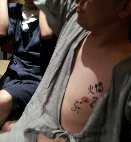 楯の川さんと上喜元さんは、超ウルトラうれしそうに体へサインしてもらってました奥の上喜元は背中にデカデカとサインもらってました。