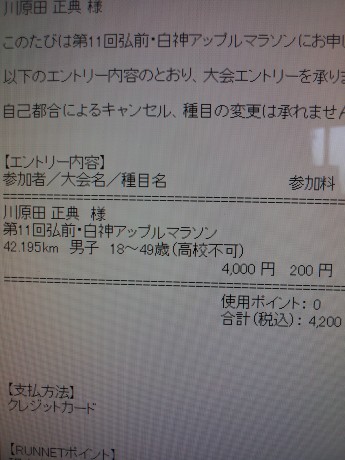 アップルマラソンでまた42.195kmにチャレンジします。
