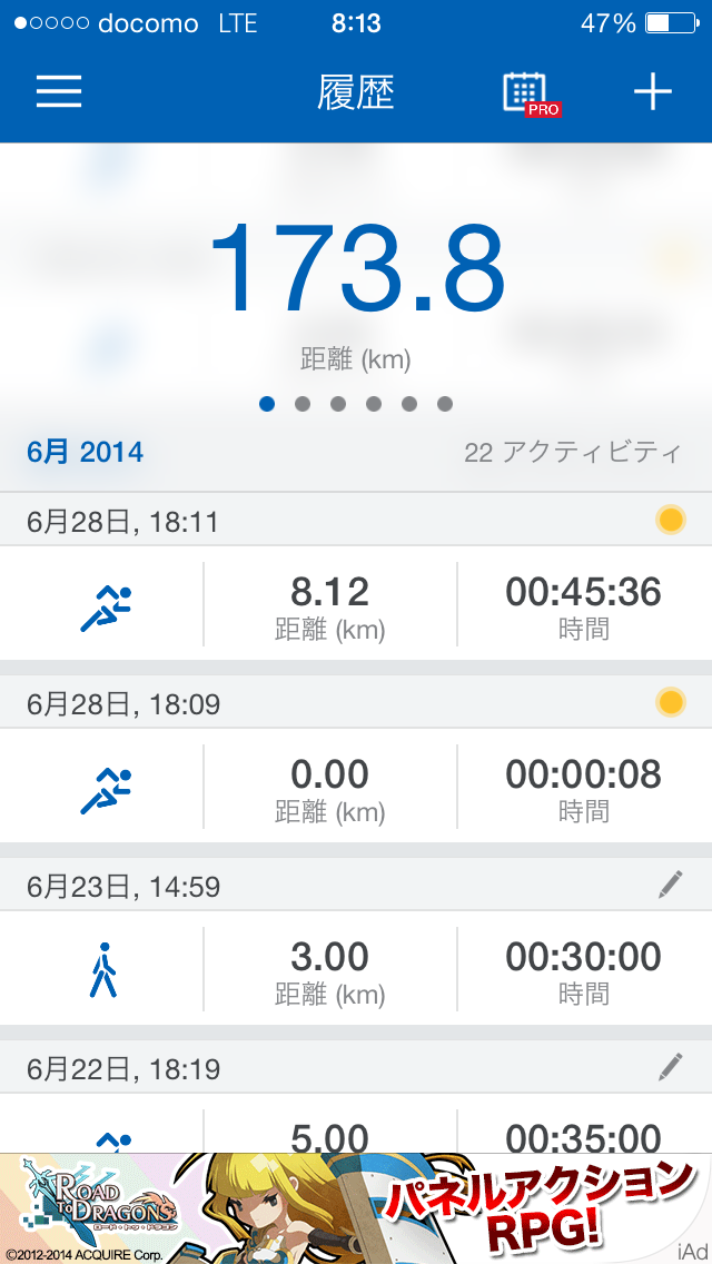 すぐ息が上がって歩くから8kmを走るのに1時間もかかってしまったし、汗はドロドロで汚いしで